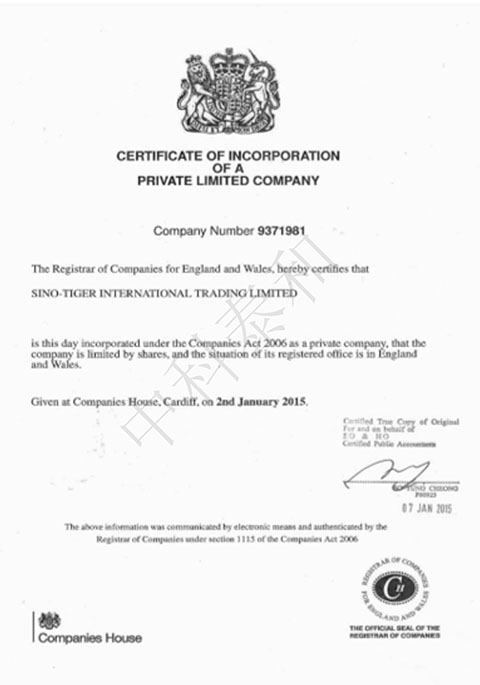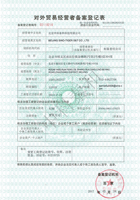 In August 2014, in order to cooperate with the overall operation of the company, the company wholly owned the establishment of " Beijing Sino-Tiger SCM Co., Ltd." to meet the requirements of domestic and foreign customers on supply chain logistics and import and export customs declaration.